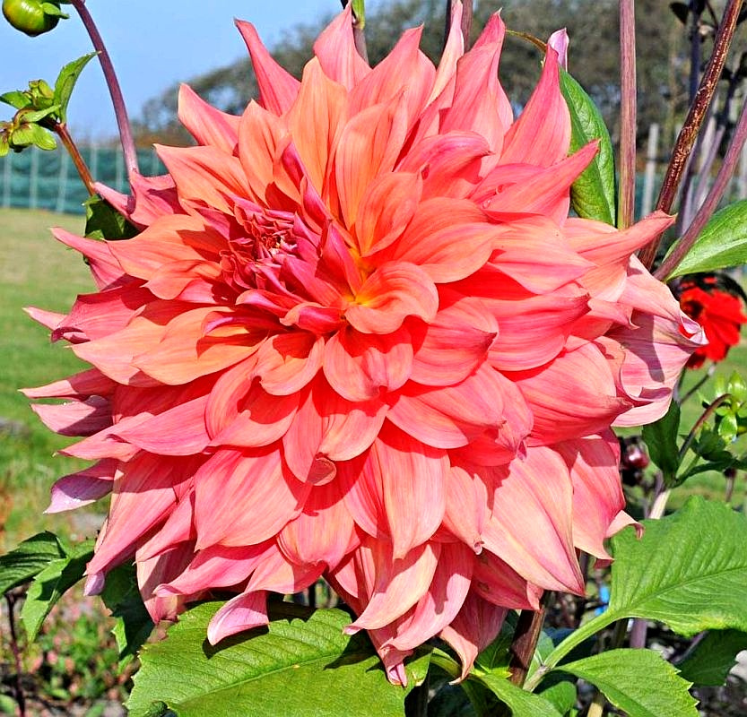 se pyšní květy velikosti talíře se zářivé masově oranžovými petály s lehkým dotykem žluté. Výška 1 metr. Excelentní novinka.