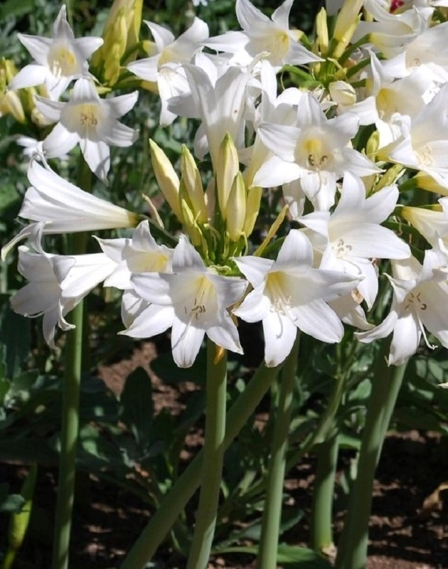 kříženec pocházející z Amaryllis belladonna x Brunsvigia josephinae. Měkkými vonnými, velkými bílými květy ve tvaru trubky se objevují na konci léta. Opravdu skvělá rostlina do květináče na slunné místo, kterou je třeba přezimovat v suchu. Robustní odolná trvalka. Tento druh Amaryllis je určen pro pěstování venku. V chladnějších oblastech je třeba ji pěstovat proti jižní zdi, na teplém slunném místě. Ujistěte se, že půda je dobře odvodněná, ne jílová. Páskovité listy se objevují na jaře a na začátku léta odumírají. Květy se objeví na začátku podzimu a vytvářejí shluky 6-12 vonných, trychtýřovitých květů. Obří cibule! Výška 50-60 cm. Novinka.