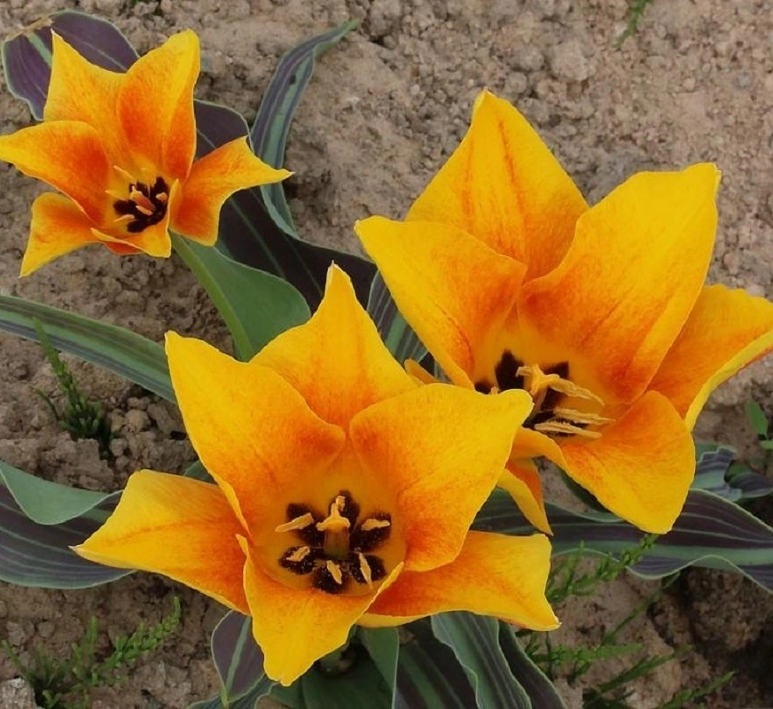 hybrid Janise Rukšanse z Lotyšska z T. vvedenskyi. Vynikající pro zahrady a skalky. 40 cm vysoká. Pozdní a dlouho kvete. Dekorativní fialově proužkované listy jsou na dlouhou dobu velmi odolné vůči botrytidě.