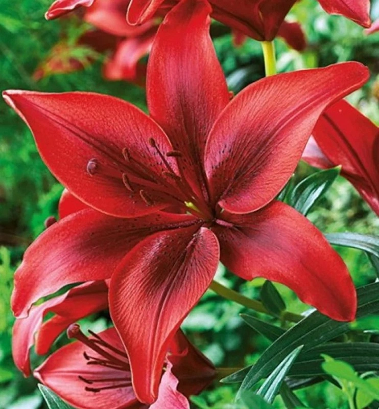 pyšní se ohnivě červenými květy kontrastujícími s bujnou tmavě zelenou listovou hmotou. Je to ideální volba pro trvalkové záhony, vynikající v zahradě i ve váze. Výška 90 cm. Novinka 2026.