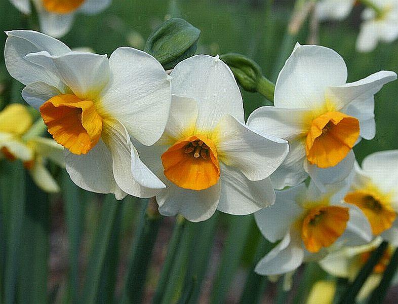 7WYO-O - 5 cm velké květy jsou po třech na stoncích 45 cm délky. Otevírají se v petrklíčově žlutém tónu, který rychle vybělává do krémově bílé barvy, při bázi svítivě oranžových kalichů je oranžový prstenec, který zasahuje až do poloviny okvětí, což dodává květům exotický vzhled a opravdový šmrnc. Americká novinka.