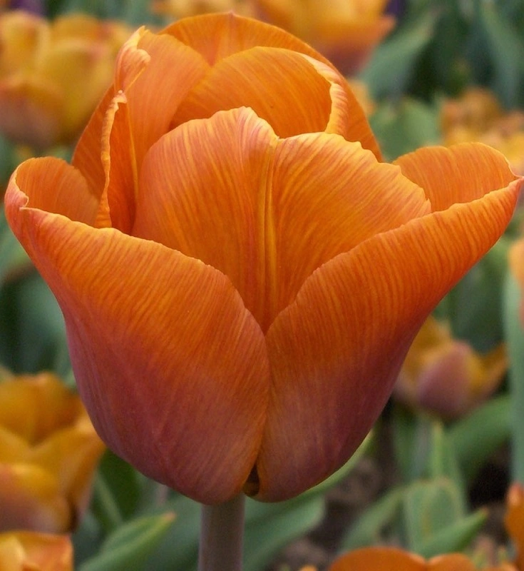 tento klasicky tvarovaný pohárovitý tulipán je v podstatě bohatě tvořený bronzovými barvami v melírovaném provedení – opravdu vzrušující vybarvení pro zahradní tulipány. Bronzově jsou zbarvené i stonky. Výška 50 cm. Novinka.