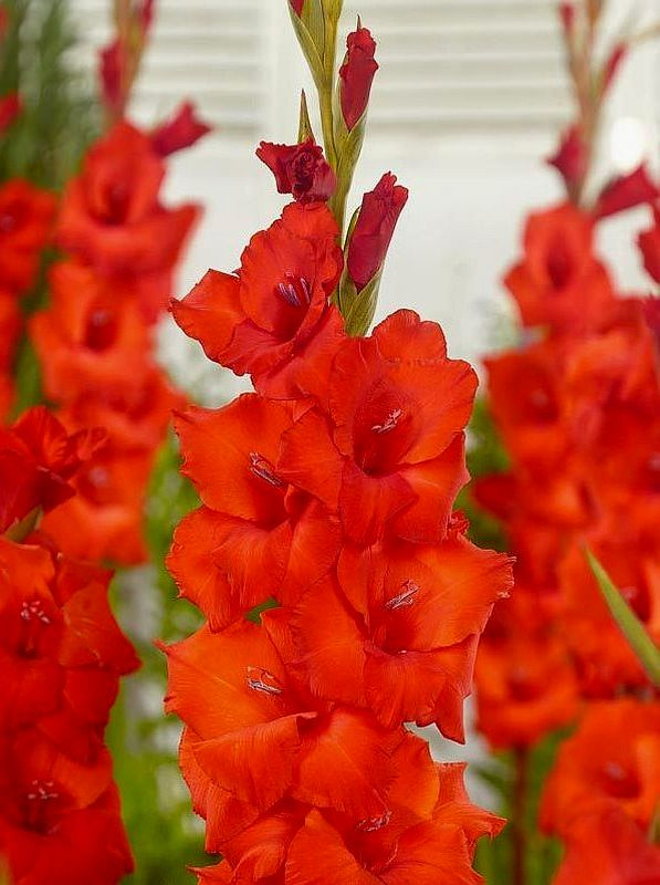 (Forever 20,436,EM). Rumělkově červené velké květy na pevných klasech ve dvouřadém nákvětu. Zářivá barva.