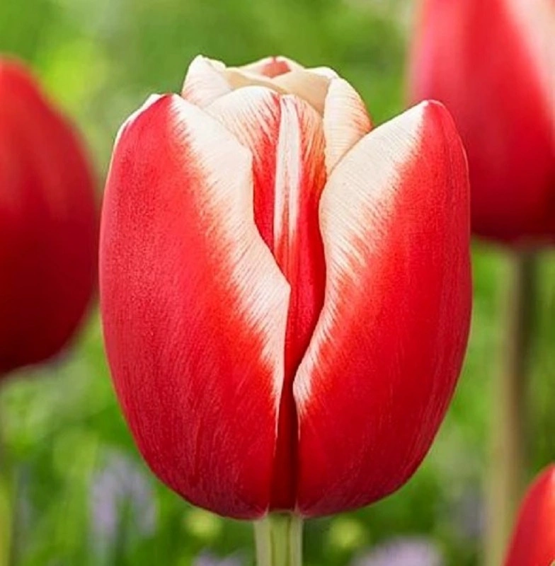 Energie pro všechny - vyniká intenzivní červení okvětních lístků s jasně bílými okraji. Vysoké, pevné stonky, dosahující až 50 cm, dodávají květům působivý vzhled na záhonech. Novinka 2025.