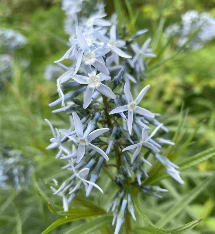kříženec amsonia hubrechtii a amsonia ciliata. Má větší, čiré fialově modré květy, které se drží vysoko nad atraktivními úzkými listy. Je na pěstování velmi nenáročnou trvalkou, která poroste v téměř každé zahradní půdě. Toleruje krátké přísušky, ale na sušších místech se dorůstá menší výšky. Vynikající podzimní barva. Výška 60-80 cm. Novinka.