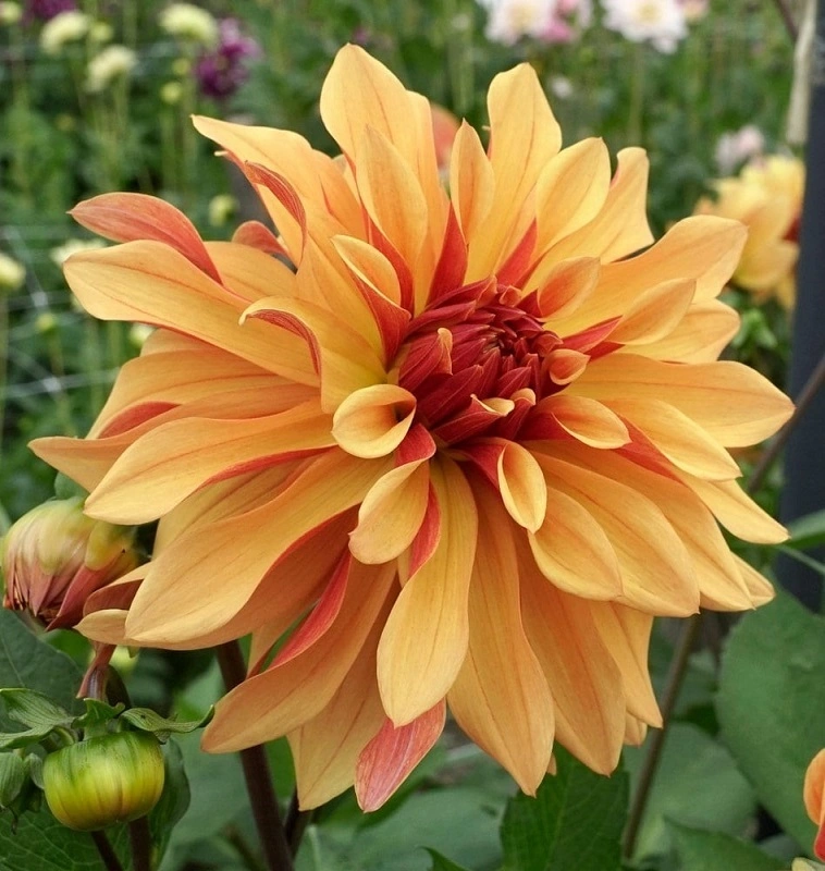 dekoračka - živý vír barev z palety teplých odstínů. Horní strana okvětních lístků je světle mandarínková, zatímco spodní strana je tmavší, teple červeně oranžová. Výborná řezovka. Je 1 metr vysoká.