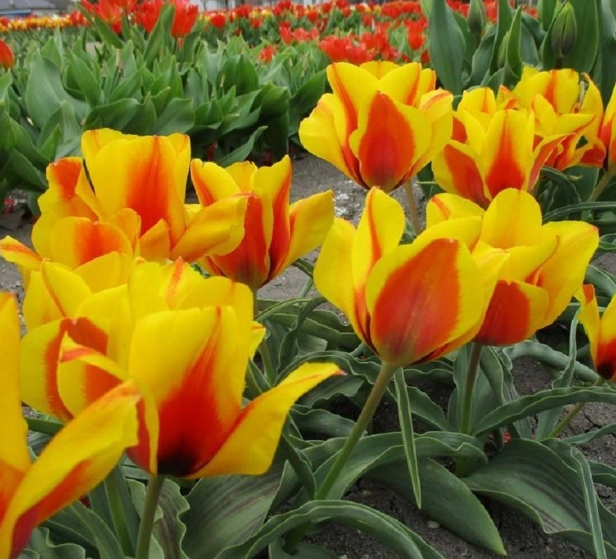 přes kaštanově hnědě proužkaté listy vykvétají na krátkých stoncích blatouchově žluté květy s oranžově protkaným exteriérem a černými, šarlatově olemovanými středy. Janis Ruksans je zodpovědný za tento T. vvedenskyi hybrid a je jedním z jeho nejlepších.