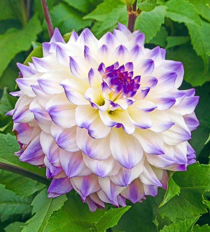 středně velká dekoračka s bílými květy s purpurově modrým olemováním okrajů. Výška 80 cm. Velmi přitažlivá sorta!