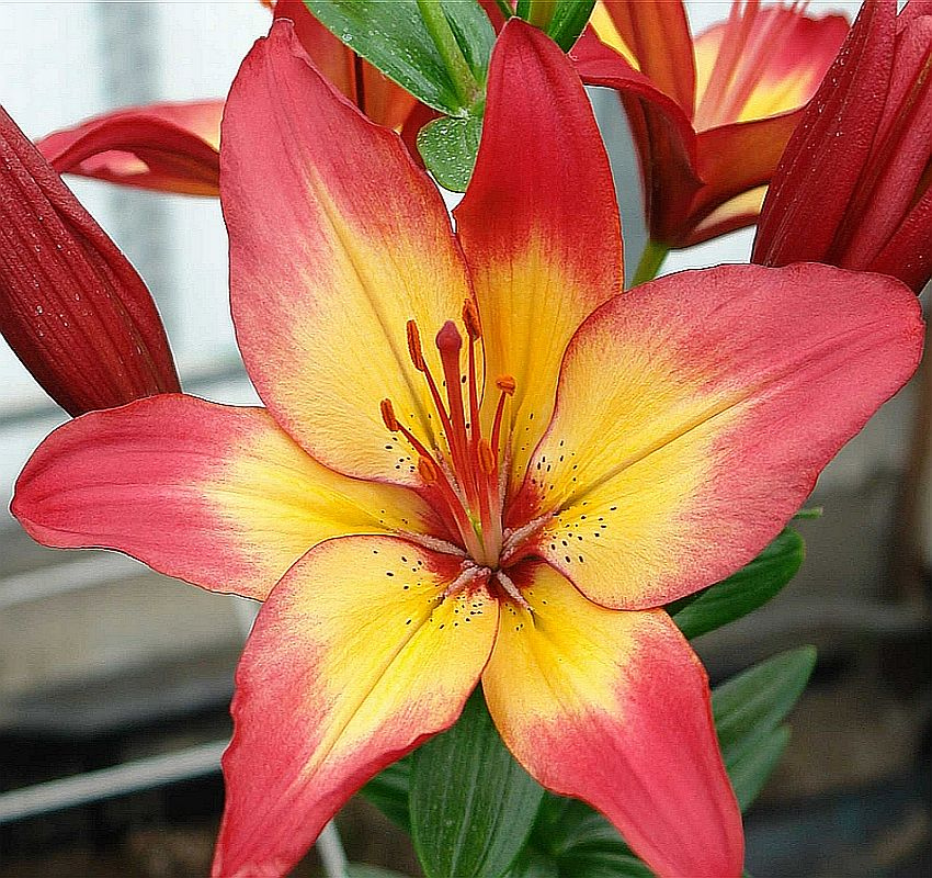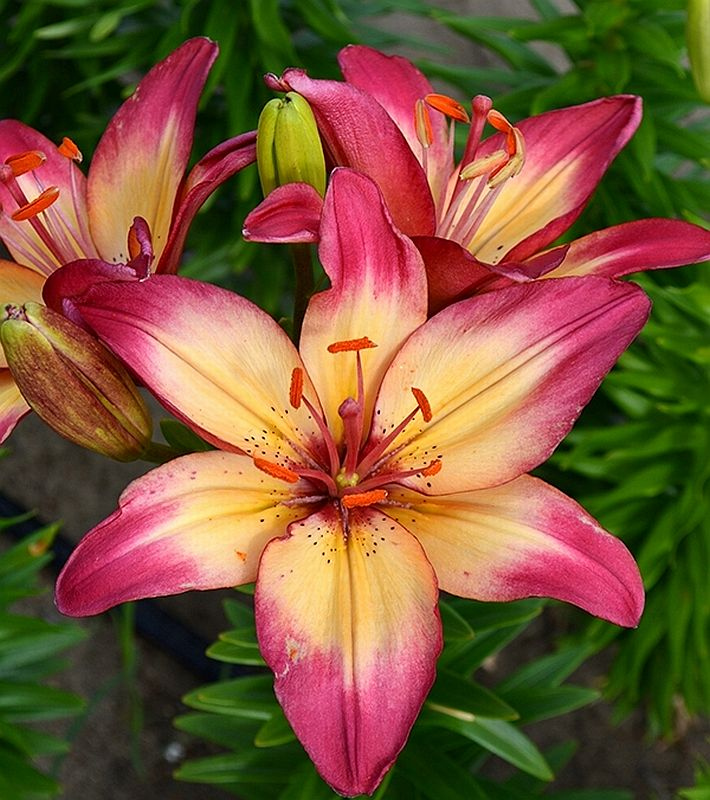 překrásně vybarvené dvojbarevné plošší květy mají pastelově růžové špičky okolo velkých chromově žlutých, jemně popepřených středů. Pevné lodyhy délky až 120 cm, perfektně větvené. Luxusní novinka.