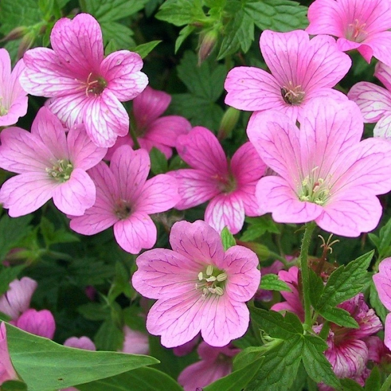 kompaktní kobercová vysoká 35 cm s tmavě růžovými květy.