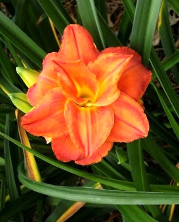 Tankesley-Clarke 98, DIP, SEV, RE. Růžově meruňkově broskvový blend s poloplnými, 14 cm velkými květy, tmavší růžový prstenec, zeleně a žlutě tónované hrdlo. Výška 60 cm.