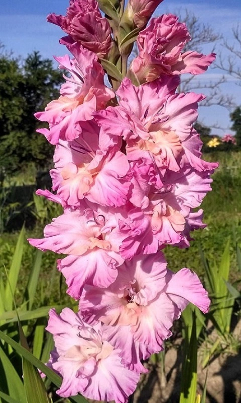 Zakis 21,465,M. V překladu Dům Panenek, Velké květy krásné, fialkově růžové barvy, uprostřed zřasených a velmi tuhých květů se nachází oranžově červený přechod tónu. Zdravý kultivar a robustní klasy.