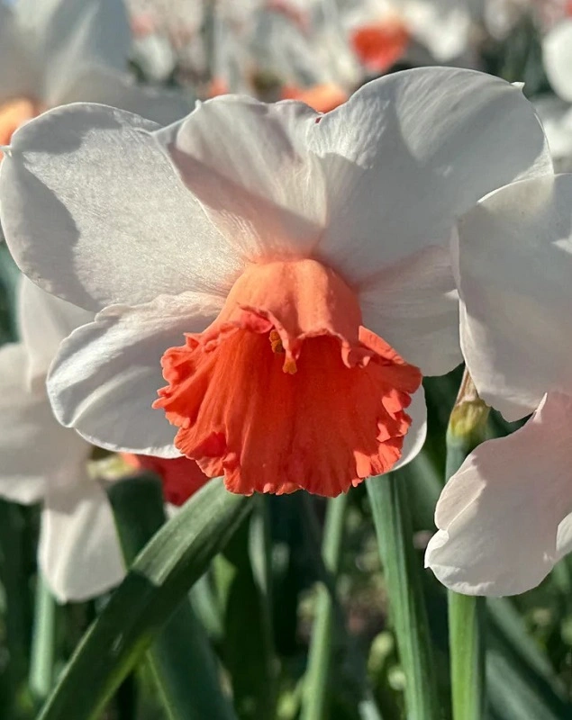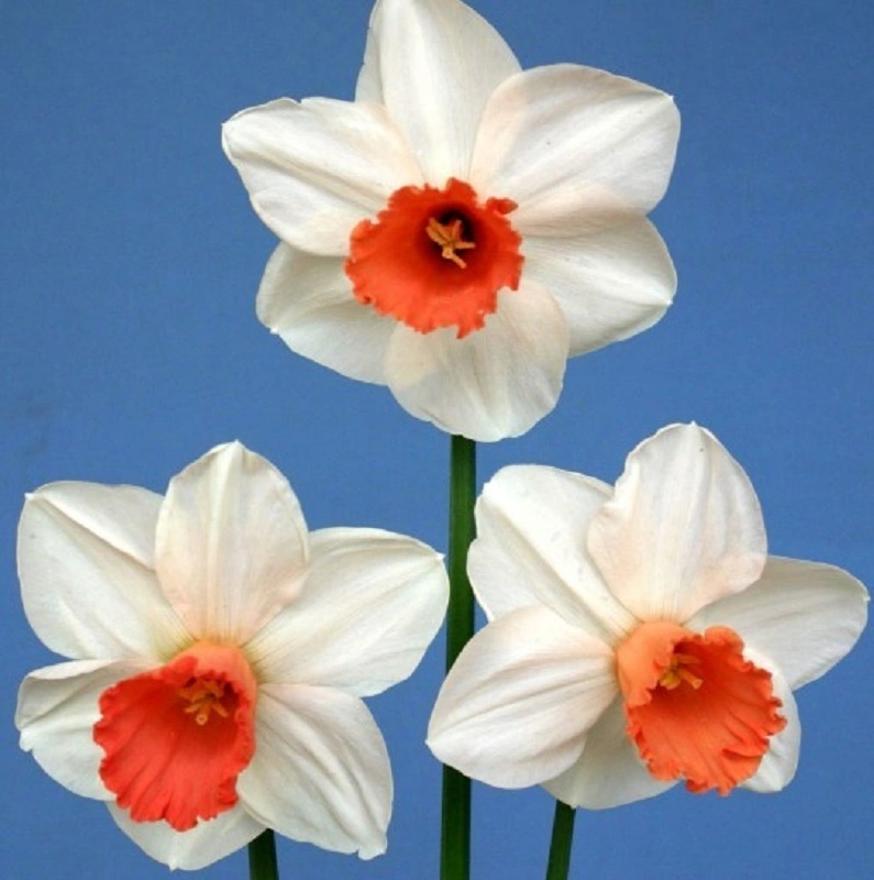 2W-RRW – Mitsch. Poměrně velké, přes 11 cm velké květy mají pěkně srovnané, čistěskvoucí bílé okvětí, oválná trubička trubkovitého charakteru je červené růžová - ani červená ani růžová, prostě růžovočervená. Někdy, za chladnějšího počesí je konec korunky bíle lemovaný. Další potomek z Magician. Výška 45 cm.