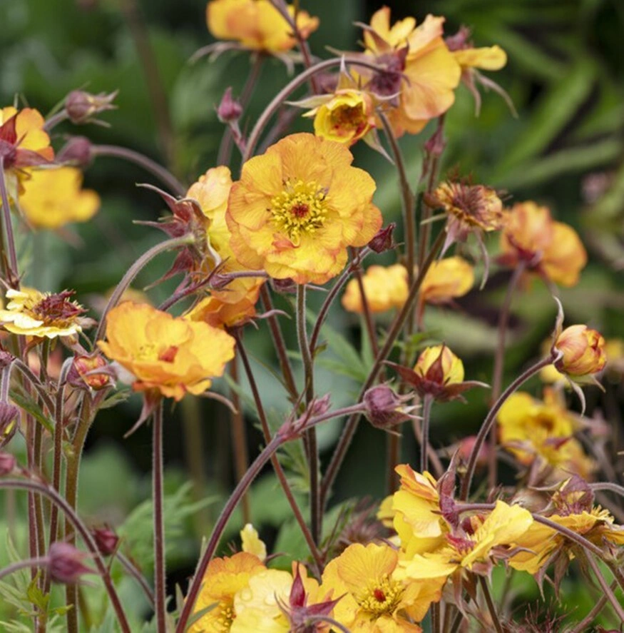 okouzlující kuklík s exoticky zbarvenými květy v tónech zralého manga. Poloplné květiny se tyčí na tenkých stoncích nad kompaktním trsem listů svěží zelené barvy. Rostlina dorůstá výšky 30-40 cm a je ideální do smíšených trvalkových záhonů, ale i pro pěstování v květináčích. Plně mrazovzdorná. Novinka.