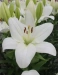 vyšší pyramidální soukvětí nese plošší, sněhově bílé květy bez teček, v hrdle zelená hvězda. Výška 1 metr. Novinka 2025.