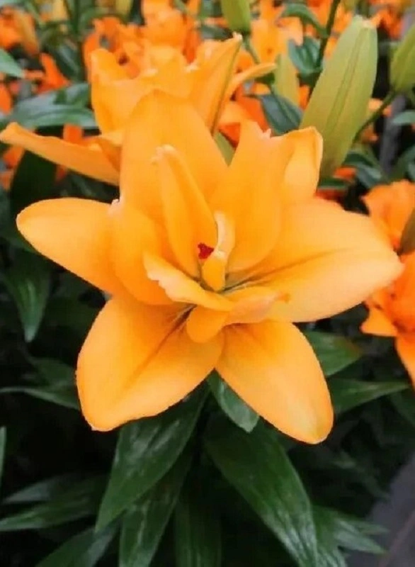 meruňkově až broskvově oranžové miskovité, ale plné květy. Výška 110 cm. Kvete velmi raně.
