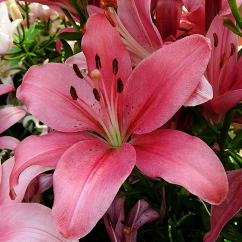 jemně pastelově růžové, dokonale tvarované květy bez teček. Výborné soukvětí, postavení květů a pevné lodyhy délky 110 cm. Osvědčená odrůda.