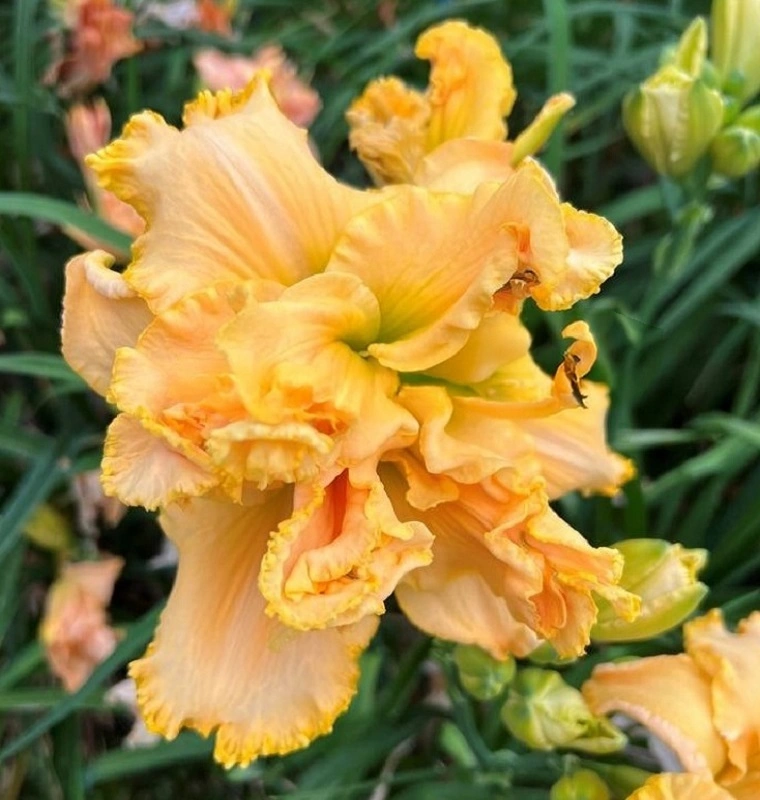Heeemskerk 2026.TET,SEV,M,RE. Jedinečná transformace barev – květy se během zrání mění ze světle zelené na růžovou a poté na krémově broskvové tóny, což záhonům dodává dynamický prvek. Elegantní, volánkovitě zřasené okvětní plátky s kontrastními prstenci a zeleným hrdlem pro větší vizuální hloubku. Velikost plných květů je 15 cm, střední výška 65–75 cm s pevnými stvoly.