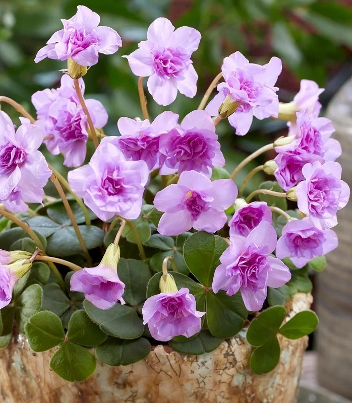 oxalis ndulans - využijte příležitosti pěstovat rostlinu, která je opravdu vzácná! Šťavel 'Pom-Pom' není běžně viděn. Květy se objevují od konce zimy do jara v krásné hojnosti dvojitých květů v jemném odstínu pastelové fialkové. Je krásným zpestřením během chladného období. Novinka.