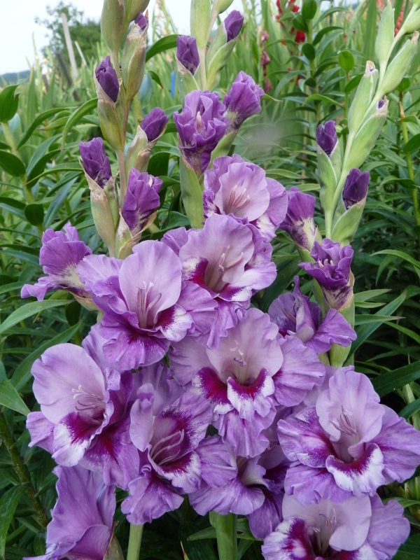 Novák 2016,375,M. Středně fialový, okraje petálů jsou tmavší. Spodní petály jsou v hrdle tmavě fialové s karmínově fialovými skvrnami, které jsou bíle lemované. Klasy jsou dvouřadého uspořádání s 21-23 puky. Otevírá až 10 květů.
