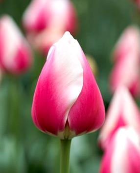 sytě růžové oválné květy mají kontrastní krémově žluté lemování petálů. Výška 60 cm. Naprosto unikátní novinka.