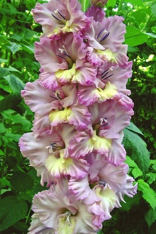 Kuzněcov 2009,575,M. Světle šeříkově růžová se zesílením odstínu ke krajům okvětních lístků ve formě šeříkové lemovky. Spodní okvětní lístek s krémově zlatým jazýčkem. Skvělá harmonická kombinace odstínů. Krásné silné zřasení. Velmi dlouhé a pevné klasy s hustým uspořádáním květů ve dvouřadu. Vynikající růstové vlastnosti. Vynikající zahradní efekt.