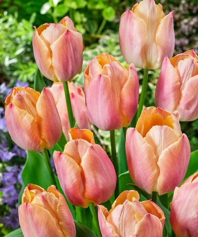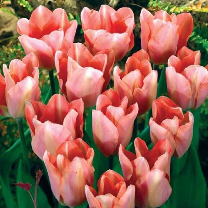 je krásný tulipán, který svými barvami působí opravdu jarním dojmem. Kvete brzy a zůstává v růstu poměrně nízko, 30 cm, což je činí velmi vhodným pro okraje záhonů nebo do květináče. Základní barva je měňavě lososová, míchaná. Super novinka.