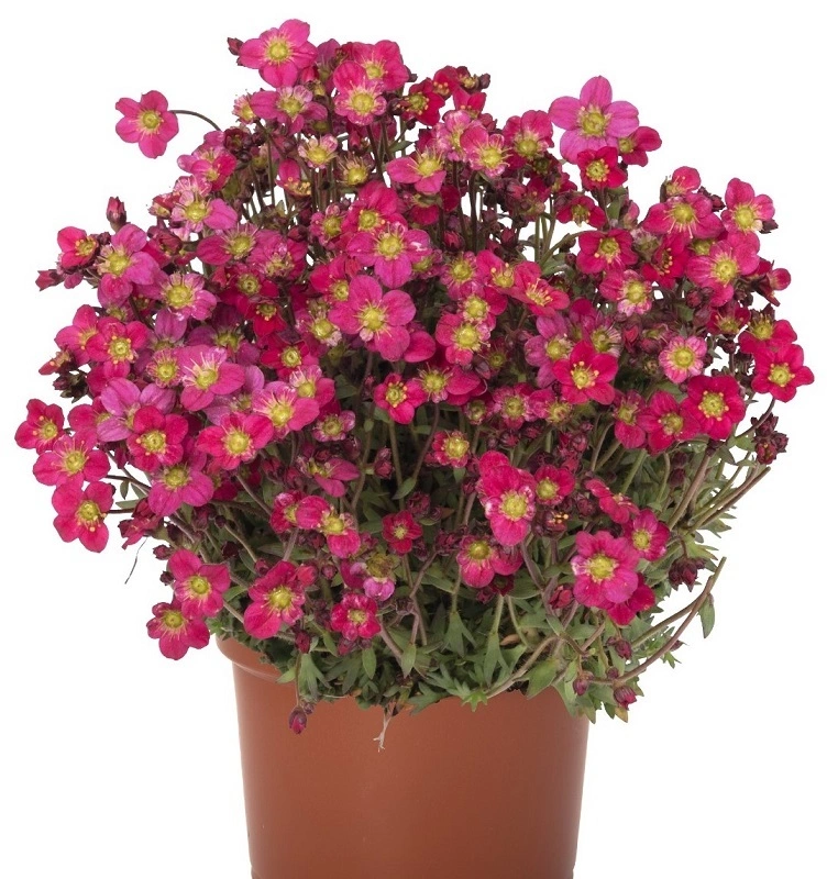 na jaře nad listy vykvétá množství drobných červených květů se zeleno-žlutým středem. Vyrůstají na tenkých stoncích, což vypadá velmi efektně. Výška 12-18 cm.