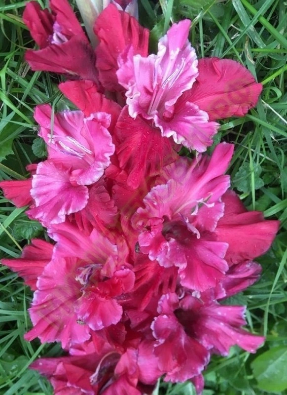 Vinkelis 15,567,M. V překladu Stříbrný okraj. Červeně malinové květy, vnitřní okvětní lístky jsou světlejší se stříbrným okraji. Velmi zajímavé a naprosto unikátní vybarvení. Výborné růstové vlastnosti. Velké hlízy.