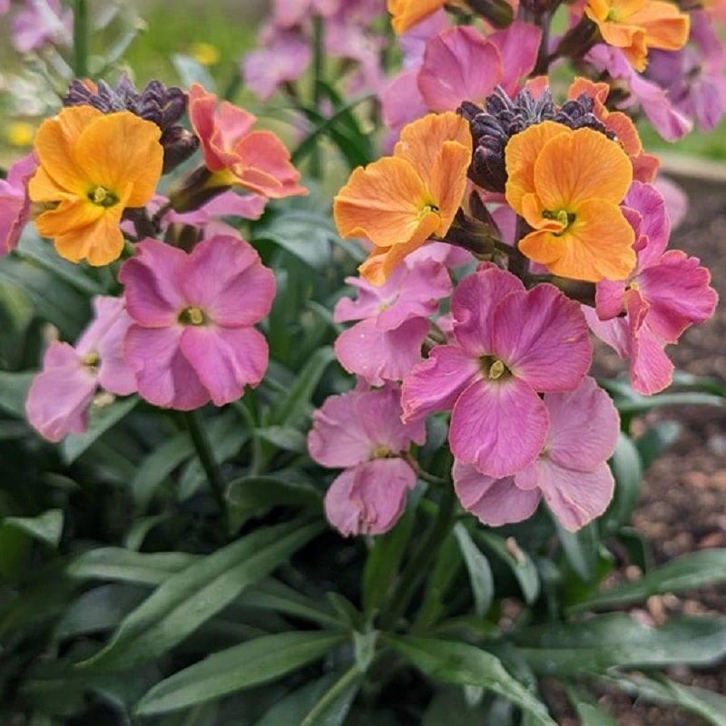 stále zelená trvalka. Štíhlé zelené listy pokrývají tuto více větvičkovou keřovitou trvalku. Na jaře vykvétají skupinky malých, vonných květů se čtyřmi okvětními lístky v kouřově fialové a měkce žluté barvě. Po usazení má nízké až střední potřeby na vodu v dobře odvodněné půdě. Odolná do -18°C. Výška 45 cm. Unikátní novinka.
