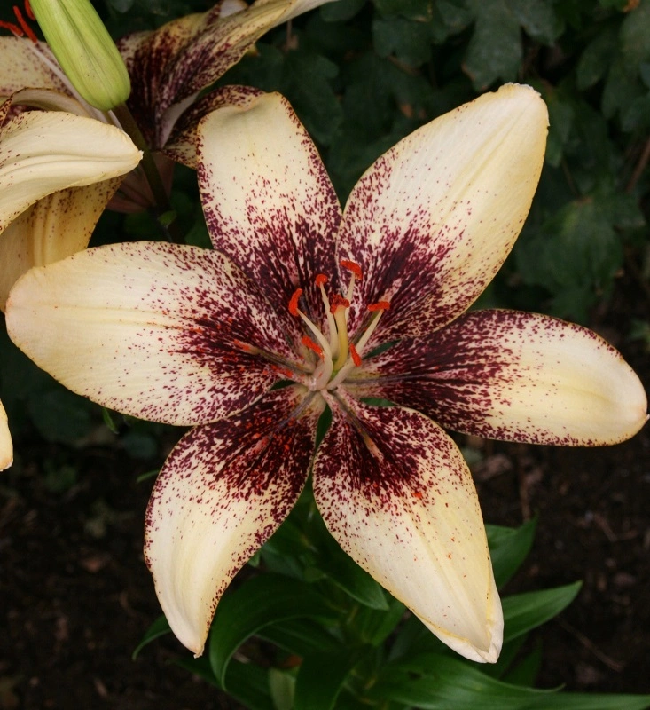 velmi krásný mahagonově hnědý až kaštanově červený tango hybrid na lososově meruňkovém podkladu plošších květů. Výška 90 cm. Novinka 2027.