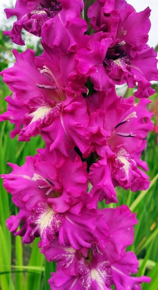 Zakis 22,475,M. Daleká galaxie. Tuze zřasené květy v jasně, ale sytě šeříkové barvě s krémově zbarveným jazýčkem a tečkováním kolem něj. Vynikající substance, hustá textura. Květy jsou velmi přesné a odolné s 10 a více současně otevřenými květy. Odrůda s budoucností!