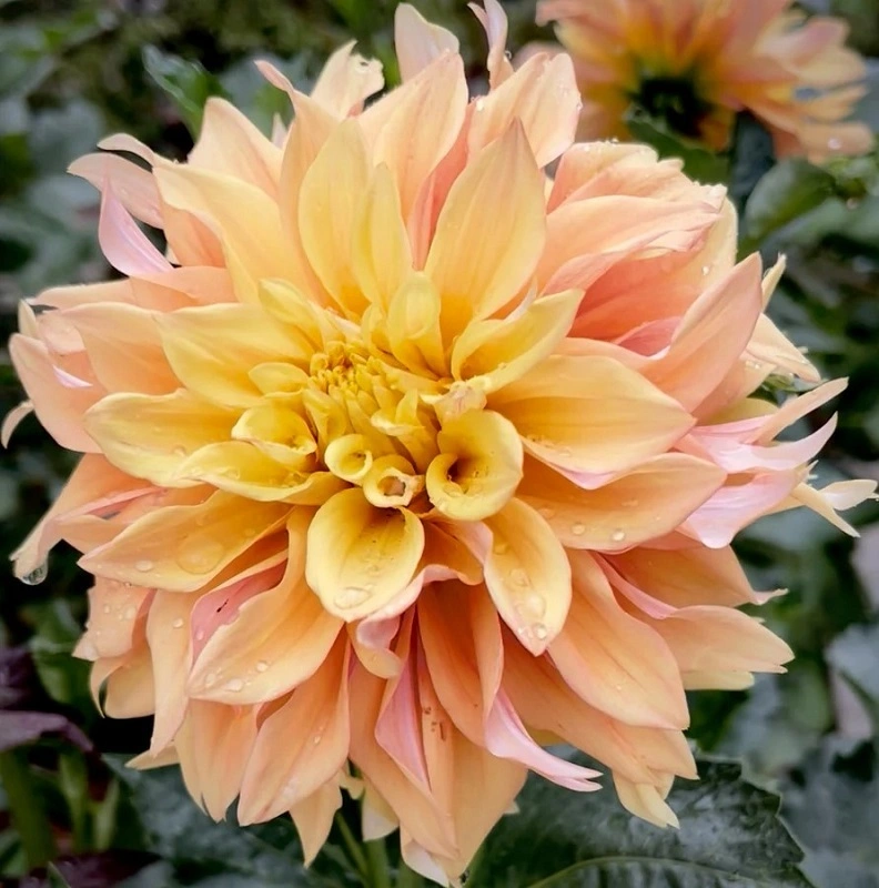 tento obří dekorativní typ okouzlí plnými květy o velikosti až 25 cm ve vzácné blend meruňkové barvě. Na slunci se pyšní až éterickým, růžově zlatým leskem — skutečný magnet pro oči. Výška 110 cm.